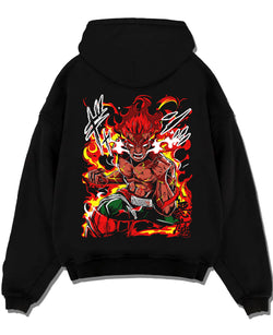 Step into the fire with this premium anime hoodie featuring Might Guy from Naruto Shippuden unleashing the legendary Eight Gates technique.