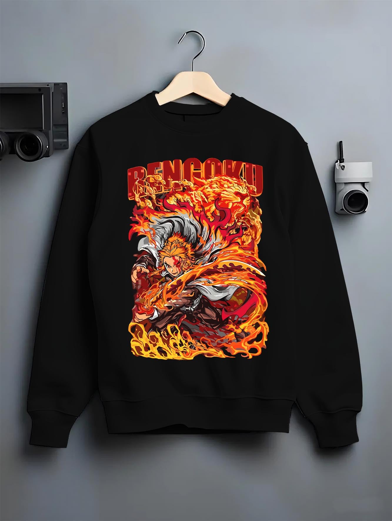 Embrace the power and determination of Kyojuro Rengoku from Demon Slayer with this exclusive design. Channel the intensity of Kyojuro Rengoku’s showdown with Akaza from Demon Slayer: Kimetsu no Yaiba (KNY). This design is available as a hoodie, premium sweatshirt/jumper, or oversized T-shirt, giving you flexible anime clothing options for every season. The motif captures their Mugen Train clash—perfect alongside arcs with Tanjiro, Nezuko and the Hashira—delivering a unique, premium feel for everyday streetwear. An exclusive, affordable pick from Japan-inspired apparel—ideal as a gift for valentine or christmas/xmas, and great for limited drops.